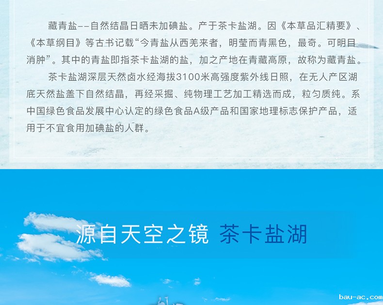 自然结晶日晒未加碘盐。产于茶卡盐湖。[微信扫码购买]