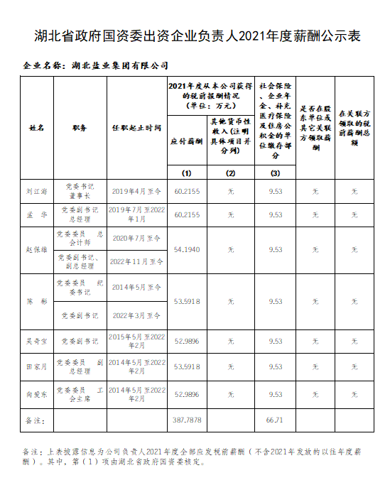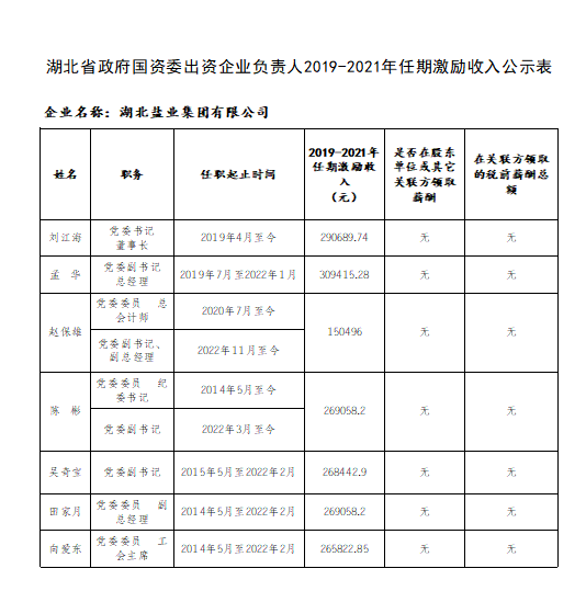 湖北省政府国资委出资企业负责人2019-2021年任期激励收入公示表、湖北省政府国资委出资企业负责人2021年度薪酬公示表